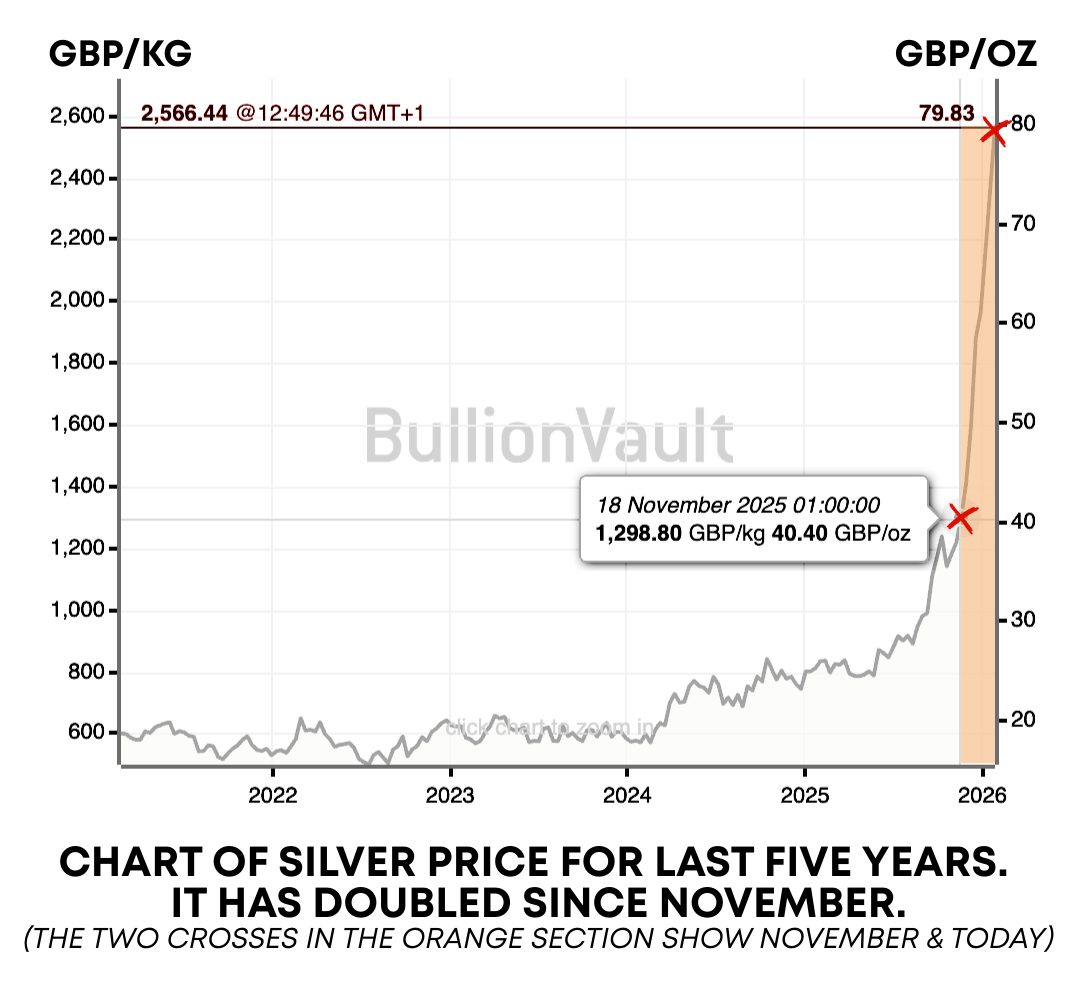 I wrote a little about this in my last letter, in short it is due to a huge demand which outstrips what silver is available (gold and silver are seen as safe investments in a turbulent world driving prices up, physical silver is now also heavily used in industry and, unlike in the past, much of it is not reclaimed and is instead lost in discarded products such as solar panels and EV car batteries).