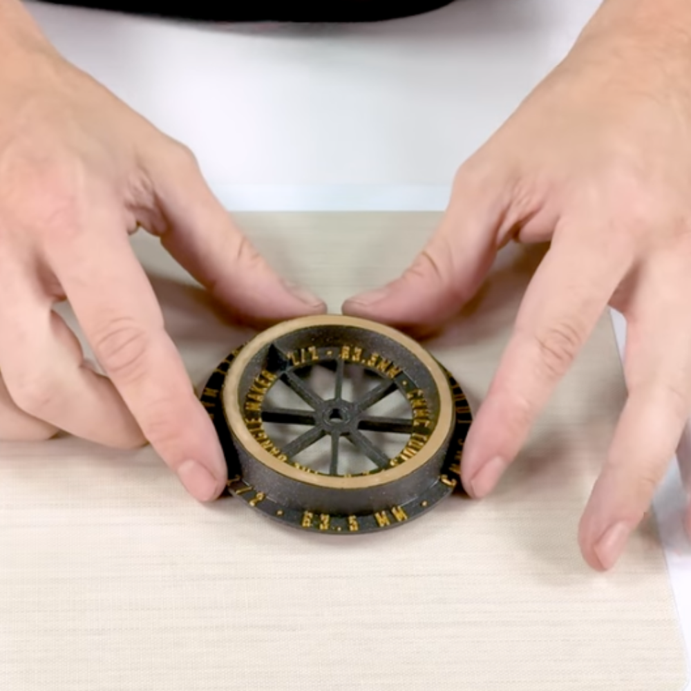 - Release the bangle: Place the maker down with the writing facing upwards and push the bangle out. Place two fingers on the outer edge and press with one finger in the middle until the bangle pops out. If it still feels wet, return it to the dehydrator to dry fully.